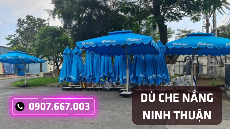 Ninh Thuận là một tỉnh có vị trí địa lý đặc thù quanh năm hầu hết là thời tiết nắng nóng. Về mặt địa lý, đây là tỉnh có nền kinh tế phát triển mạnh. Trong số đó, tốc độ đô thị hoá nơi đây cũng rất chóng mặt. Nhu cầu sử dụng Dù Che Nắng để phục vụ các công việc kinh doanh bán hàng ngoài trời cũng từ đó mà tăng cao. Trong nhiều năm trở lại đây, khi bạn đi qua địa bàn tỉnh thì hầu như ở đâu bạn cũng sẽ thấy vô số các sản phẩm dù che nắng rất thịnh hành tại Ninh Thuận.