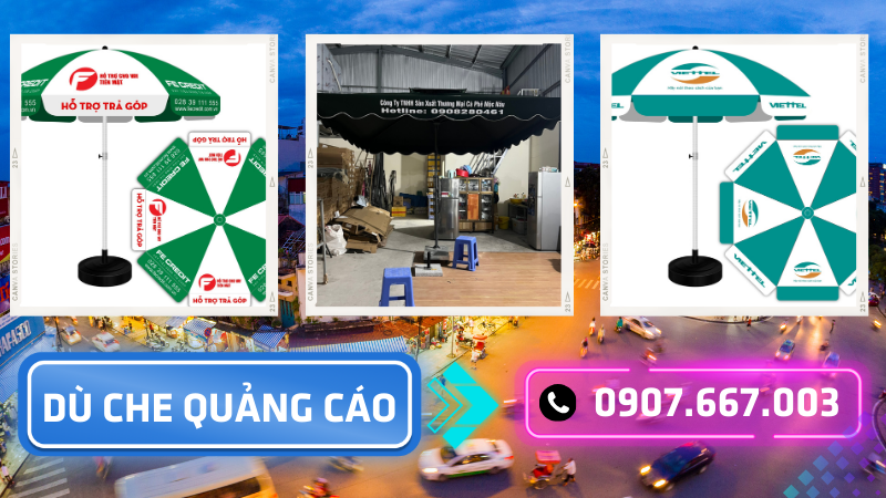 Một số loại dù cũng khá phổ biến trên địa bàn tỉnh Gia Lai. Đó là các sản phẩm dù che nắng được thiết kế theo yêu cầu. Thiết kế ở đây thường tập trung vào phần mái dù. Thay vì lựa chọn các mẫu sẵn có với nhiều màu sắc khác nhau. Bạn cũng có thể đề xuất tùy chọn gói in logo hoặc tên thương hiệu lên mái dù theo yêu cầu. Việc này sẽ giúp công việc kinh doanh bán hàng của bạn gặp nhiều thuận lợi hơn trong việc quảng bá thương hiệu. Giúp doanh nghiệp của bạn tăng nhận khả năng nhận diện thương hiệu với người tiêu dùng.