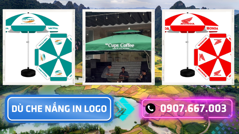 🔸 Dù Che Nắng in Logo Quảng Cáo tại Tiền Giang